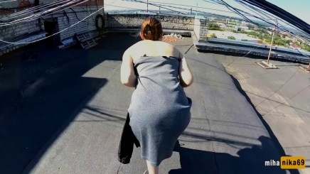 Зрелый эксгибиционист пригласил молоденькую короткостриженную подружку, с какой специально встретился чтоб вместе трахнутся над проходящими под ними людьми, так-как они собираются это сделать на крыше, то есть обсалютно публично. Прохожие осуждающе смотрят на извращенцев, но никто ничего не высказывает мужчине и его не менее извращенной пассии в чулках, находящейся на крыше полностью голой. В какой-то время послышалась приближающаяся полицейская сирена, из-за какой мужик насторожился, но, к его счастью, это не за эксгибиционистами. Обычно девиц трахают через разорванные штаны, но в этот раз не Берет ткани на джинсах дяди.