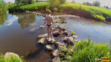 Российские черти приехали в деревню чуть отдохнуть, полежать на зеленой насыщенной травке, подышать настоящим свежим воздухом, ну и трахнутся конечно. Место молодая пара выбрала только удачное - около сексуально журчащей речки, в какой можно сразу ополоснуться, когда интимное досье будет закончено. Буквально в 100 метрах виднеются и другие дома, а так как все заняты работой, никому нет дела, ебется там кто-то или нет. Пошляки палятся новомодными айфончиками, да белыми кроссовками, кои можно встретить на дискотеках по выходным, где пиздятся два поселения по ночам. Собственно не, уже везде провели интернет и сычи обитают там.